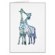 girafes africaines qui s'embrassent, dessin d'art romantique. Bleu et vert beau dessin africain sur une carte postale.