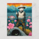 OEuvre colorée dans un style surréaliste de pêche au chat