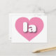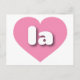 Cette carte postale est dotée d'un coeur rose vif contenant des lettres coques inférieures arrondies et audacieuses, blanches, une abréviation ludique pour l'État de Louisiane ou la ville de Los Angeles. Le verso de la carte postale est vide, en attendant votre texte customisé ou vos sentiments manuscrits.