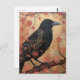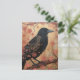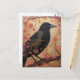 Un magnifique corbeau perché sur une branche entouré de fleurs, peinture en média mixtes générée par intelligence artificielle
