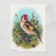 Belle image vintage d'un goldfinch perché sur une branche et entouré de feuilles et de fleurs.