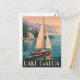Profitez de la beauté paisible du lac de Garde au coucher du soleil avec cette carte postale avec un voilier gracieux qui parcourt les eaux calmes. Les teintes chaudes du soleil couchant se reflètent sur la surface du lac, encadrée par des montagnes majestueuses au loin. Parfait pour les amateurs de paysages sereins, de scènes nautiques et d'art de voyage classique.