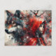 Carte Postale Le Loup Surveille Le Petit Grunge Rouge