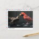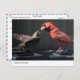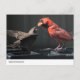 Cette carte postale captivante présente une superbe photographie capturant un moment intime entre un cardinal rouge vif et un moineau brun. Les deux oiseaux sont perchés de près sur ce qui semble être une surface noire, le cardinal semble offrir ou partager de la nourriture avec le moineau. Le contraste des couleurs, la rareté de telles interactions aviaires pacifiques, et l'accent croustillant rendent cette image à la fois fascinante et chaleureuse, parfaite pour les amateurs d'oiseaux ou comme une note réfléchie à envoyer à ceux qui sont chers.