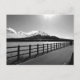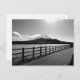 Carte postale photo en noir et blanc de la neige enveloppé le mont Fuji de la rive du lac Yamanaka, l'un des cinq lacs Fuji.