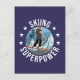 Illustration amusante des sports d'hiver, montrant des graphismes de montagne et une femme sur skis, et le dicton : le ski est ma superpuissance et mes petites étoiles. C'est le cadeau idéal pour tous ceux qui aiment le ski, les montagnes et les sports d'hiver.