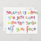 Carte postale magnifiquement conçue par miss T designs. La carte postale dit : "Le succès est quand vous ne pouvez pas effacer le sourire de votre visage." Rappelez à quelqu'un comment ils ont bien fait. Conçu avec des couleurs vives et l'effet de coloration.