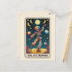 Étalez la bonne humeur et la célébration avec la carte postale artistique inspirée du Tarot 'L'Artiste de la Joie'. Cette illustration incroyablement unique présente un squelette dansant portant un costume de clown arc-en-ciel audacieux sur un ciel nocturne étoilé et vibrant.