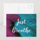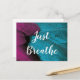 Cette carte postale des textes de coutume comporte de belles plumes d'un ton de bijou conçoivent aux nuances magenta et turquoises roses foncées de vert bleu. Le message en manuscrit blanc nous rappelle de ralentir et "respirez juste". Ces cartes postales sont personnalisables. Vous pouvez changer le texte, police, couleur des textes si vous souhaitez. Frappez juste le bouton de personnalisation pour entrer dans votre propre texte, ou frapper le bouton de personnaliser pour faire n'importe quel style change. Fait un grand cadeau ou une décoration de inspiration !
