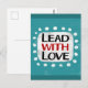 "Lead With Love" est une citation inspirante ou motivante mignonne avec une forme d'accent blanc entourée de points fantaisistes texturés blancs.