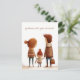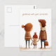 Cette carte postale de retour à l'école présente un écolier avec des vêtements d'hiver vintages tenant la main de sa mère et de son père. Vous pouvez customiser le texte par défaut.
