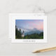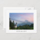 Photo carte postale avec nuages colorés dans le ciel pendant le coucher du soleil sur l'église Maria Gern avec vue sur la grande montagne Watzmann dans les Alpes allemandes près de la frontière avec l'Autriche à Berchtesgaden en Bavière, Allemagne avec une frontière blanche et le texte 'Allemagne'.
