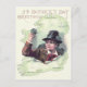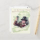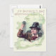 Envoyez un peu de vert à vos proches cette année. Cette impression vintage de la Saint Patrick représente un leprechaun tenant des shamrocks. L'île d'Irlande en arrière - plan.