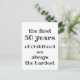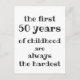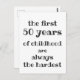 NewParkLane - Carte postale pour les 50 ans, avec la citation drôle 'Les 50 premières années de l'enfance sont toujours les plus difficiles', dans une typographie script moderne et amusante.
