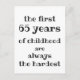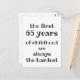 Nouvelle carte de vœu de Lane pour un 65e anniversaire, avec une citation drôle « Les 65 premières années de l'enfance sont toujours les plus difficiles », dans une typographie moderne et amusante.