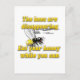 Cette drôle de carte postale sur la disparition des abeilles montre une abeille drôle qui avertit : "Les abeilles disparaissent ; mangez votre miel pendant que vous le pouvez." Avec le réchauffement climatique, la pollution et d'autres problèmes de l'environnement inconnus, certaines espèces disparaissent. Bien que la disparition des abeilles ait des conséquences plus désastreuses pour la vie sur terre que l'absence de miel, ce drôle de dicton utilise l'humour pour rappeler aux gens que les abeilles sont en effet en train de disparaître.