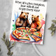 Des voeux amusants aux porteurs de carte postale ayant une énorme pizza, pensant à vous, envoyant des câlins et des voeux, applaudissez la carte postale.