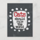 Un design typographique mignon qui dit "Les chats devraient diriger le monde". C'est un texte noir et rouge sur un rectangle blanc avec des points funky et ludiques qui l'entourent, posé sur un fond gris texturé uni.