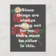 Cette carte postale florale rassurante comporte la déclaration « Puisque les choses fonctionnent toujours pour moi, il doit y avoir de la valeur en cela. » Cette simple déclaration peut aider à peu près n'importe qui à traverser les obstacles et les moments difficiles de leur vie.