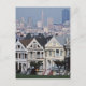 This a photo of the famous row of houses known as the Painted Ladys. Dans le background, c'est la skyline de San Francisco.
