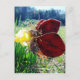 Fée avec ailes rouges et robe violette Odeur dans les jonquilles jaunes Fleurs et Photo par Artiste Sandy Closs Fée, fées, pixie, pixies, imaginaire, fleurs, papillon, papillons, rouge, jaune, violet, conte de fées printanière, pays de fées
