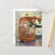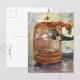 Carte postale avec le tableau The Cage (1885), de Berthe Morisot (1841-1895), elle est une artiste impressionniste française. La critique d'art Gustave Geffroy la surnomme les trois grandes dames, les trois grâces de l'impressionnisme, avec Mary Cassatt et Marie Barcquemond. Ce tableau représente une cage d'oiseau en osier sur une table avec un bol de fleurs en céramique.