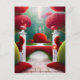 La carte postale de l'imaginaire générée par l'IA est un paysage de style Wonderland, composé d'arbres rouges et de topiaires fantaisistes.