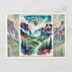 Voici une carte postale de paysage de montagne de style vintage, avec une palette de couleurs d'aquarelle et une atmosphère nostalgique.