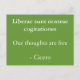Une carte postale verte avec une citation latine et la traduction en anglais en texte blanc. "Nos pensées sont libres" est une citation de l'avocat romain Cicéron.