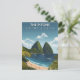 Échappez à la réalité avec cette superbe carte postale de voyage de The Pitons Saint Lucia ! Ce design illustré captivant présente les emblématiques pics volcaniques jumeaux, Gros Piton et Petit Piton, s'élevant majestueusement de la mer des Caraïbes cristalline. La scène capture la beauté sereine des plages célèbres de Sainte-Lucie, de la végétation tropicale luxuriante et des villages côtiers charmants