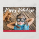conception moderne de carte photo de vacances heureuses en blanc avec écriture élégante blanche. Personnalisez les détails du texte et de l'image.