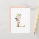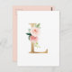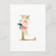 Carte postale L monogramme Elégante et fantaisiste. Il présente des fleurs d'aquarelle, de la verdure et des feuilles d'or imitation.