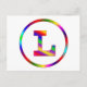 Un monogramme coloré avec la lettre L en couleurs arc-en-ciel à l'intérieur d'un cercle arc-en-ciel. Partagez votre fierté de votre nom avec un joyeux L initial amusant.