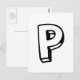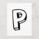 Présentez notre élégante carte postale Lettre P - une façon élégante et personnalisée d'envoyer des souhaits chauds ou ajouter une touche de sophistication à votre espace. Cette carte postale est dotée d'une lettre P magnifiquement conçue dans une police de caractères de bon goût, créant un design visuellement attrayant et personnalisable. Faites une déclaration avec la carte postale Letter P - un accessoire chic et personnalisable qui ajoute une touche de sophistication à vos salutations ou décors. Commandez maintenant pour personnaliser vos messages et espaces avec cette carte postale magnifiquement conçue!