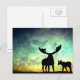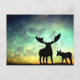 Une mère orignal et son bébé regardent un lever de soleil vibrant