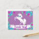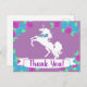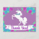 Carte de remerciement représentant une licorne tendance et un design floral.