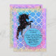 Une licorne silhouette noire avec des étoiles colorées partout sur un fond en quatre feuilles de thé vert avec un bord scintillant rose et or puis un cercle bleu sarcelle avec une fioriture de gemme où vous pouvez personnaliser votre événement. Ambiance festive capricieuse et girly.