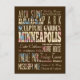 Belle typographie design listant attractions & célèbres lieux de Minneapolis, Minnesota. Grand souvenir !