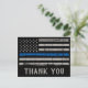 Carte de remerciement Thin Blue Line - Drapeau américain aux couleurs du drapeau de la police, design en détresse. Montrez votre appréciation à un policier exceptionnel ou à un agent des forces de l'ordre avec ce remerciement thin blue line, parfait pour l'appréciation des policiers, des agents de police et des services de police. Personnalisez l'intérieur avec votre message personnel à votre policier préféré ou au service de police. COPYRIGHT © 2020 Judy Burrows, Black Dog Art - Tous droits réservés. Carte de remerciement Police Thin Blue Line Law Enforcement.