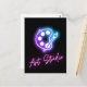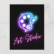 Carte postale cool à l'allure de néon. Palette peintre violet / bleu néon avec "studio d'art" en rose - parfait pour un usage personnel, ou comme publicité d'affaires.