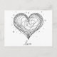 Carte Postale Ligne Whimsical Art Coeur avec "Amour"