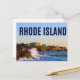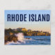 Une carte postale pittoresque de Rhode Island qui présente des vagues écrasantes et d'élégantes demeures côtières baignées de lumière dorée au coucher du soleil, capturant parfaitement le charme de "The Ocean State".