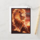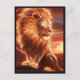 Une scène cosmique fascinante avec un lion céleste, fabriqué à partir de lumière tourbillonnante et énergique. Les yeux du lion brûlent avec éclat et éclat, tandis que sa magnifique crinière dorée et sa fourrure brille d'une brillance intense et ardente. Perchée sur un terrain rocheux, la créature majestueuse se dresse comme un phare de l'énergie primitive. Le soleil se couche dans l'arrière - plan, baignant le paysage dans des teintes chaudes et riches d'orange et de rose, évoquant un sentiment d'émerveillement et d'émerveillement.