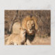 Lion se balançant avec un lionceau sur sa carte postale latérale.