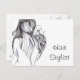 Carte postale coiffeuse unique, dessin original de l'artiste Paticia Vidour.