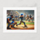Un jeune joueur de baseball est à la chauve-souris, sur le point de se balancer à une boule piquée, tandis que le attrapeur et l'arbitre sont en position, et les coéquipiers et les spectateurs regardent le match. La lumière du soleil illumine le champ, met en évidence l'action et donne vie à la scène.