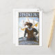 Cette carte postale est une reproduction d'une affiche vintage d'alphabétisation de bibliothèque montrant un explorateur et lisant : "Livres : Romance, Histoire, Voyage."