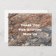 Cette carte postale promotionnelle de nature rustique présente une belle photo d'écorce d'arbre noire et brune. Ce tronc d'arbre présente de profondes rainures et des lignes diagonales créant un motif extérieur qui capture la beauté de la nature. Vos mots d'appréciation pour vos invités de chalet sont présentés en police blanche sur le devant et en police marron au dos, ainsi que votre nom ou le nom de la maison. Personnalisez rapidement tous les textes pour une carte postale peu coûteuse qui fera que vos invités auront hâte de revenir.