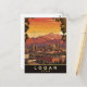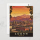 Carte postale Logan. La ligne d'horizon de la ville et la montagne derrière. Carte postale illustrée aux couleurs vives.