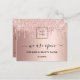 Une carte postale à envoyer à vos clients concernant la réouverture de votre entreprise de salon de beauté et/ou de coiffure après Covid-19, le coronavirus. Un fond dégradé rose gold et des gouttes de paillettes. Sur le devant : Le texte : Nous sommes ouverts. Personnalisez avec votre logo et adresse d'entreprise.